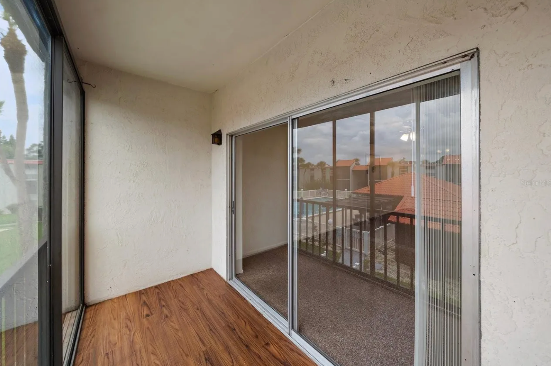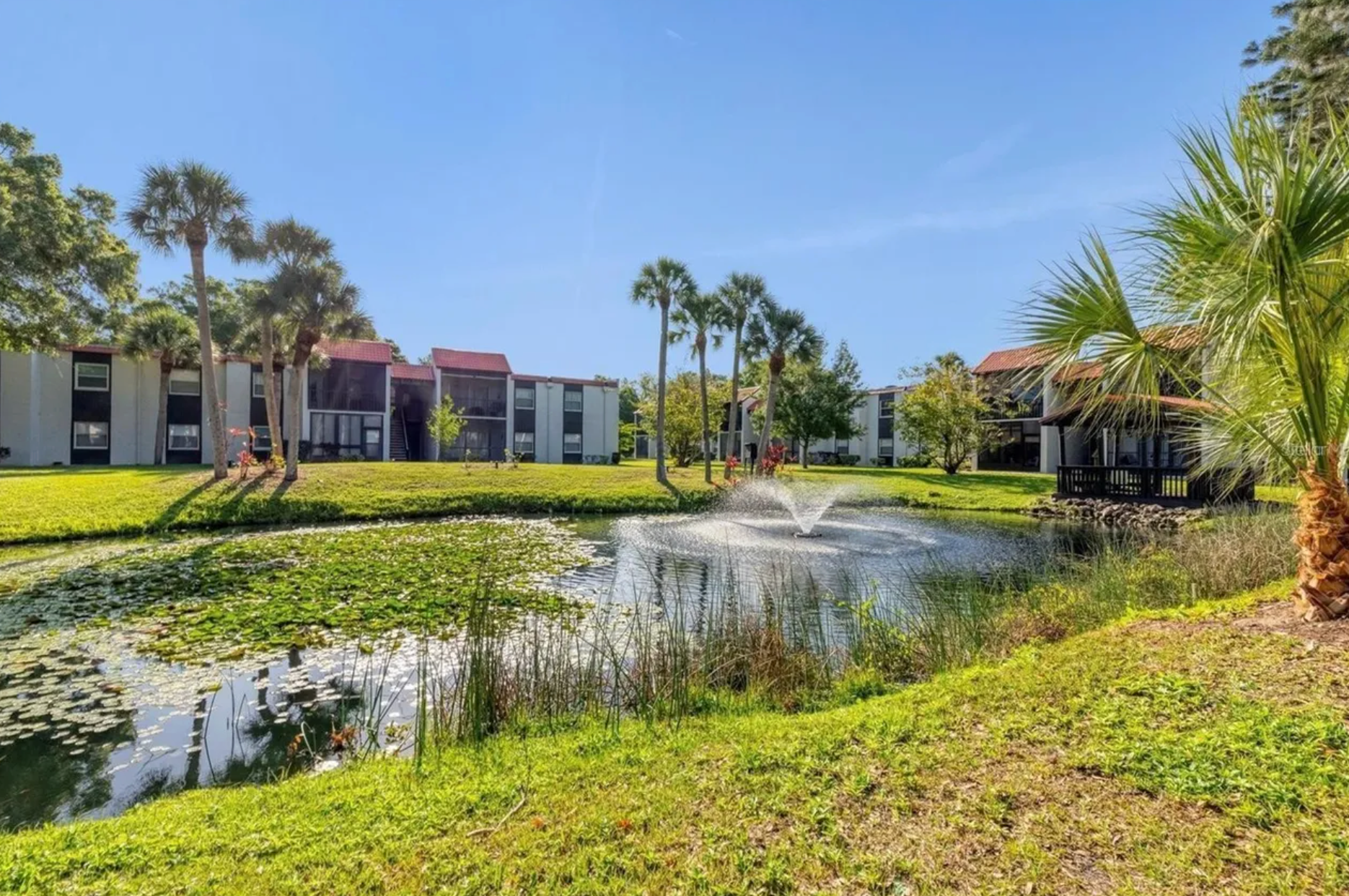 This 2-bedroom 2-bath unit is located in the back of The Village Brook Complex. The unit provides a lanai (with a set of storm sliders), with beautiful views of the pool and lake, and a water feature year-round.